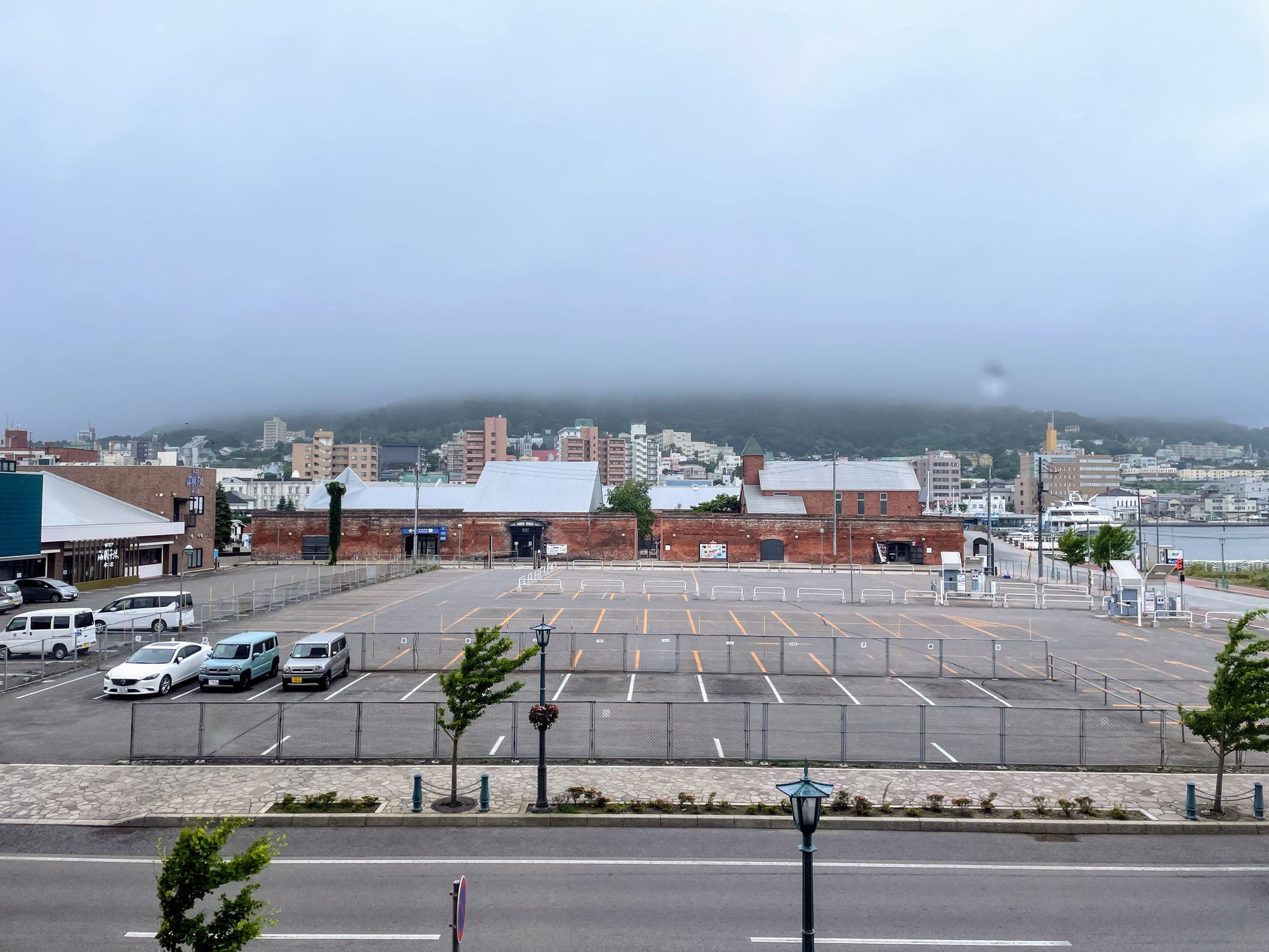 ちょっと伝わりづらいけども、植えられている木とかを見ると・・・強風なのが伝わるだろうか🌬🌬🌬