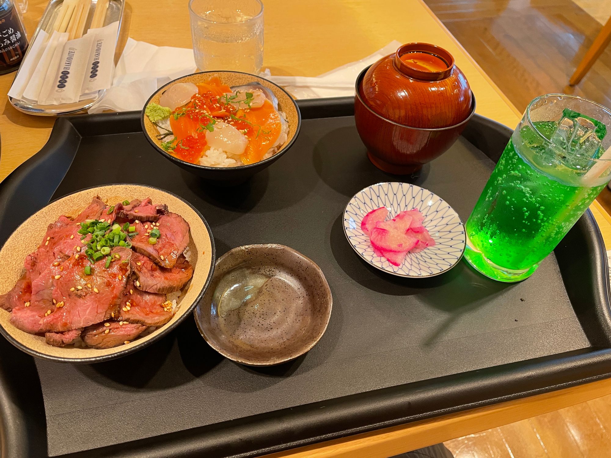メロンソーダを飲みながらミニ海鮮丼を食べたりしてきた。