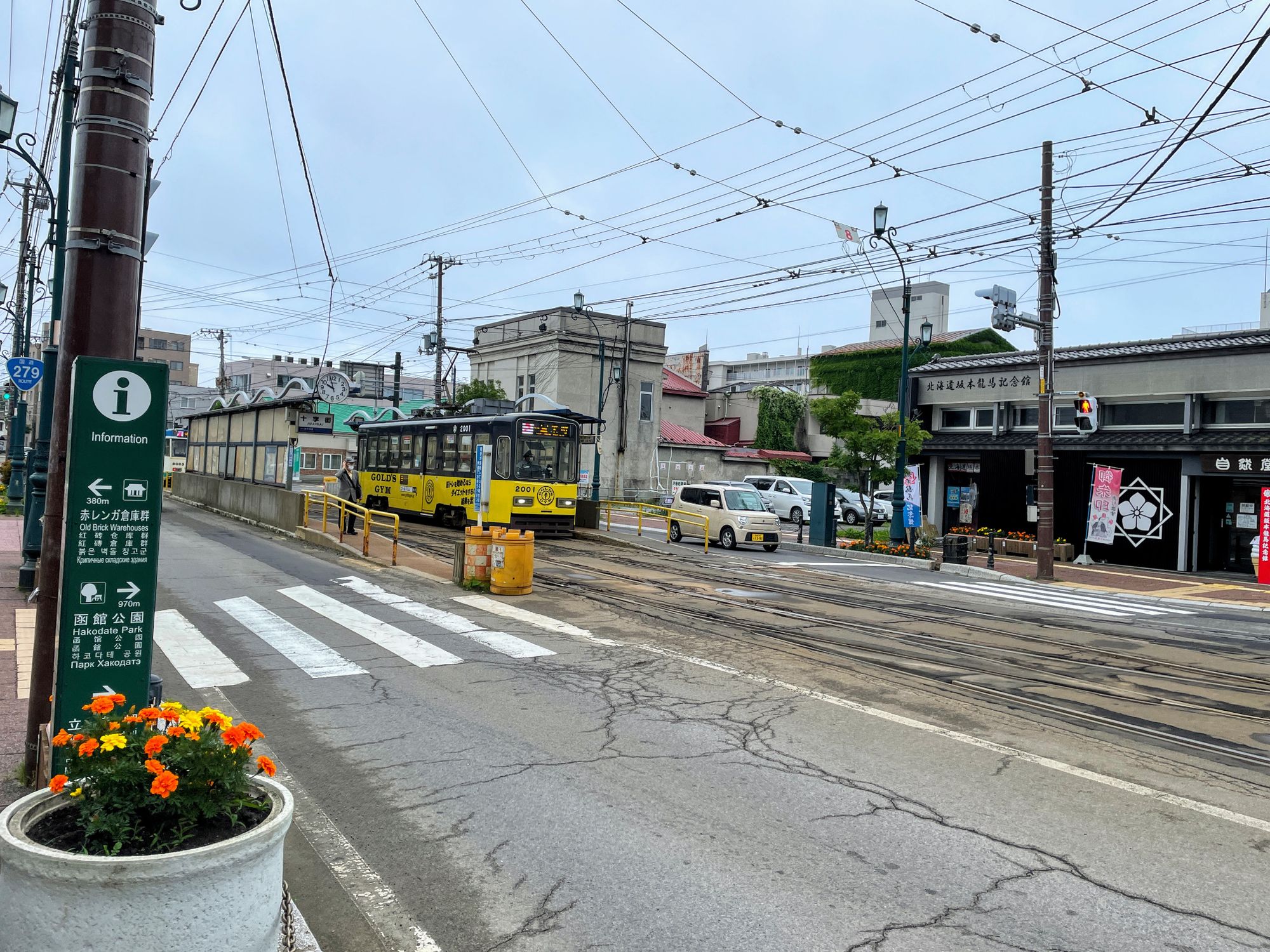 路面電車のお陰で電線が大量にある。